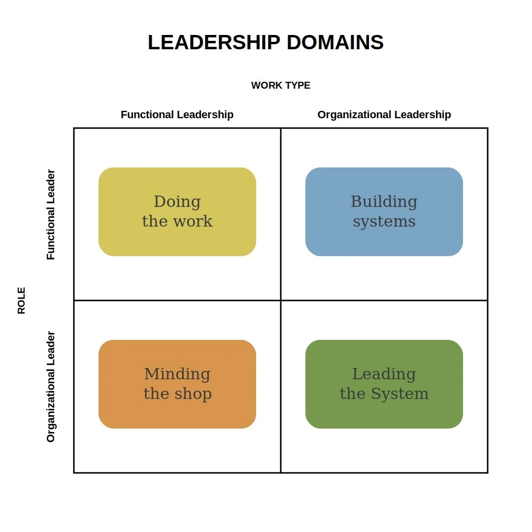 Leadership work falls into two distinct domains. Understanding the difference is what allows strong functional leaders transform into organizational leaders. And, allows organizational leaders know when they should be in which domain.
